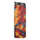 A beautiful red cardinal perches among orange and gold leaves, with blue sky behind him, on this gorgeous thermal tumbler. Perfect for anyone who loves birds, nature, and the outdoors.
