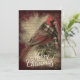 Cardinal on Holly Branch & Snowflake Script Holiday Card