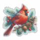 A vivid red cardinal perches gracefully on a snow-dusted pine branch, surrounded by clusters of glossy red berries and intricate pinecones, evoking the cosy stillness of winter. This detailed composition blends photorealistic textures with stylised, painterly strokes, creating a striking balance between realism and artistic interpretation. The feathers shimmer with layers of scarlet and crimson, contrasted beautifully by the cool blue-greens of the pine needles. Ideal for seasonal or nature-inspired themes, this design radiates warmth and serenity while maintaining a modern, woodland aesthetic. Whether used in festive settings or year-round nature décor, the harmony of colours and the lifelike expression of the cardinal make it an eye-catching focal point. AI generated artwork.