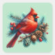Cardinal on Pine Branch with Winter Berries Square Sticker