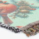 A vivid red cardinal perches gracefully on a snow-dusted pine branch, surrounded by clusters of glossy red berries and intricate pinecones, evoking the cozy stillness of winter. This detailed composition blends photorealistic textures with stylized, painterly strokes, creating a striking balance between realism and artistic interpretation. The feathers shimmer with layers of scarlet and crimson, contrasted beautifully by the cool blue-greens of the pine needles. Ideal for seasonal or nature-inspired themes, this design radiates warmth and serenity while maintaining a modern, woodland aesthetic. Whether used in festive settings or year-round nature décor, the harmony of colors and the lifelike expression of the cardinal make it an eye-catching focal point. AI generated artwork.