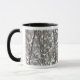 This photograph displays the contrast of a red cardinal on snowy white branches