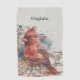 Cardinal painted in watercolor on part of the map of the state of Virginia. The state bird of Virginia with Richmond on the background