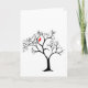 Cute red cardinal bird sitting in a silhouette snowy tree in winter. Perfect Holiday card or for Christmas.