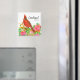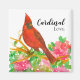 A "cardinal love" magnet decorated with a cardinal bird in a blooming pink rhododendron flowering bush illustrated with ink and watercolor. Inspired by the state bird and state flower of West Virginia. You can edit or remove the text to fit your needs.