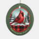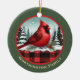 This beautiful woodsy Christmas ornament features a red cardinal bird in a snowy scene. The bird is perched on a lege decorated in buffalo plaid and snow. Your family or recipient's name -- or other text if you prefer -- is printed in gold at the bottom of the ornament. Make sure to type the text you want in the Personalise box.