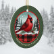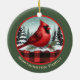 Cardinal Snow n Buffalo Plaid Family Name Monogram Ceramic Ornament