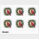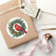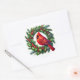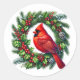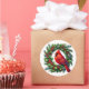 This sticker is shown with a festive holiday cardinal bird on a wreath art print.