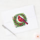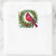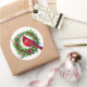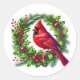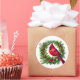 This sticker is shown with a festive holiday cardinal bird on a wreath art print.