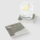 The coasters are gorgeous, a quality feel and heavy weight. They look like a precious archeological find. A rustic stone juxtaposed with a modern floral black and white print. I like the way the print goes slightly imperfect on the cut stone edges giving them a kind-of natural beauty.