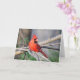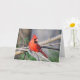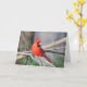 Bright red Northern Cardinal stands out on cheery greeting card. Ideal for all sorts of occasions.