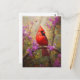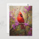 A striking red cardinal sits gracefully among delicate purple flowers, creating a beautiful contrast of bold and soft hues. This nature-inspired artwork captures the elegance of wildlife with a harmonious blend of vibrant colours and botanical charm.