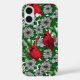Hand-drawn Christmas pattern with cardinal birds, poinsettia flowers, winter berries, and fir branches