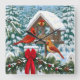 Cardinals and Christmas Bird Feeder Square Wall Clock