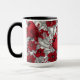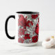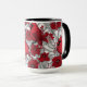 Cardinals and poinsettia in red and white mug