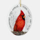 This custom memorial ornament features my coloured pencil painting of a lone cardinal. The phrase "Cardinals Will Appear When Angels Are Near" has special meaning for many people. Some believe that the presence of a cardinal is the spiritual embodiment of a loved one that has passed away. Customise the text areas on the back to make a touchingl memorial in honour of a special loved one.