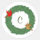Cardinals in Evergreen Wreath with Monogram Classic Round Sticker