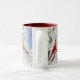 Original fine art design of male and female Cardinals in an apple tree by illustrator/designer Carolyn McFann of Two Purring Cats Studio on a quality coffee mug for bird lovers.
