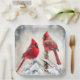 Cardinals in Winter Snow and Evergreen Tree Scene Paper Plate