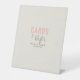 It is sturdy than I expected. Was worried about the material being flimsy but it is not. It is printed on some sort of plastic material. It should serve well at our wedding as long as wind isn’t too bad. Otherwise we will put some paper weights behind it and should be fine.