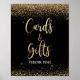 Cards & Gifts Party Sign Black & Gold Glitter