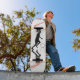 The silhouette of a fisherman's son, playing in the surf with that age old classic toy, the hoop and stick.