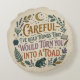 Nestled amongst ferns, oak leaves, and shimmering crystals, a wise toad sits beneath a crescent moon and stars, guarding the secrets of the text below. The quote, "Careful, I've read things that would turn you into a toad," is rendered in a charmingly rustic, old-style typography that feels right at home in a dusty library or a fantasy story. The earthy colour palette of forest green, dusty purple, and mustard yellow gives it a cosy, antique feel. If you find your greatest adventures between the covers of a book and possess a slightly mischievous wit, this design captures your spirit perfectly. It’s a sophisticated nod to the power of knowledge, seasoned with a hint of folklore magic.