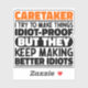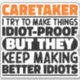 Funny Caretaker Sayings "Caretaker I Try To Make Things Idiot Proof But They Keep Making Better Idiots". Grab this Funny Caretaker design as a funny gifts for an awesome mum, dad or friend.
