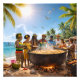 A vibrant Caribbean beach scene filled with warmth, culture, and community. Locals and tourists gather by the shoreline, cooking together in a shared pot as the sun shines brightly overhead. Surrounded by golden sand, sea shells, swaying coconut trees, and birds gliding across blue skies, this artwork celebrates island life, unity, and the joy of shared traditions. A perfect piece for coastal décor, tropical lovers, and anyone drawn to the heart and soul of the Caribbean.