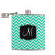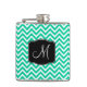 Caribbean Green Chevron Pattern with Monogram Hip Flask