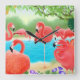 Caribbean Pink Flamingo Birds Wall Clock