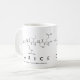 Carice spelled out in amino acids as C A R I C E (Cysteine Alanine Arginine Isoleucine Cysteine Glutamic acid) on a mug for the scientist in you.
