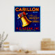 Vintage fruit crate label art for Carillon brand Florida grapefruit and oranges.
