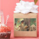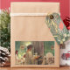 Swedish artist Carl Larsson paints this traditional Swedish scene of the youngest daughter serving coffee and breakfast on Lucia Day, December 13th. She wears a long gown and has a crown of candles on her head. Scandinavian Christmas sticker.