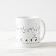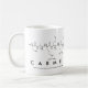 Carmel spelled out in amino acids as C A R M E L (Cysteine Alanine Arginine Methionine Glutamic acid Leucine) on a mug for the scientist in you.