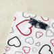 Carmin Red Grey Happy Hearts pattern Beach Towel