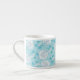 Unique aqua blue and white carnation patterned expresso mug. Uniquely designed and produced by Sarah Trett.