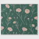 This wrapping paper is designed with a delicate illustration of pink carnations and leaves on a deep, soothing dark green background, capturing the serene beauty of nature. The elegant pattern with detailed lines of flowers and leaves will not only make your gift special, but will also make an unforgettable impression on the recipient.