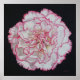 Poster print of an original oil painting. The pink and white dianthus flower sits on a black background allowing the colors to pop out.