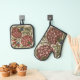 Carnation Flower Tile Antique Rustic Art Oven Mitt & Pot Holder Set