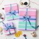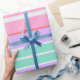Carnation Pink, Mauve and Robin Egg Blue Stripes Wrapping Paper