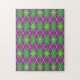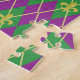 A harlequin pattern of green and purple is transformed into a playful argyle with an overlay of gold diamond outlines and fleur de lis, creating a fun and colourful pattern perfect for any New Orleans influenced Mardi Gras celebration.