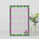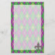 A harlequin pattern of green and purple is transformed into a playful argyle with an overlay of gold diamond outlines and fleur de lis, creating a fun and colourful pattern perfect for any New Orleans influenced Mardi Gras celebration. A patterned fleur de lis sits in the bottom corner of the stationery to create a cute added touch.