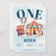 Carnival Circus Big Top Blue 1st Birthday Invitation