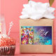 Colourful ,elegant and vibrant fine art design with romantic carnival dancers :Whimsical dance figures, beautiful blonde woman in feathered sparkling costumes is dancing with a young Harlequin. Watercolor painting in bright pink,fuchsia,green,red,blue,yellow colours , gold sparkles inspired from Comedy of Art (Commedia dell'arte ) and Carnival of Venice . It is also a beautiful gift for christmas,holiday,special occasions,birthday parties ,New year's eve masquerade ball,Valentine's day.