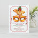 A muted diamond pattern is overlaid with a Mardi Gras mask with feathers and double framed. Festive and cheerful, it's perfect for a Mardi Gras celebration. (FP)