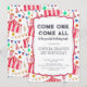 Step right up and get ready for a spectacular celebration! This whimsical and colourful invitation features a playful circus theme, complete with adorable balloon, big top tents, and carnival elements. This budget choice will ensure that your guests will be impressed and excited to attend your event. With plenty of space to customise the details of your party, this invitation is the perfect way to set the tone for a fun and festive celebration. Don't miss out on the chance to make your event unforgettable with this delightful invitation that will transport your guests to a magical world of circus fun!