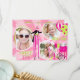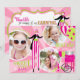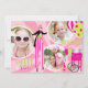 Sweet and fun carnival theme thank you card with 3 photo inserts. In pinks and lime green.
