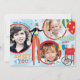 Sweet and fun carnival theme thank you card with 3 photo inserts. In aqua, blue , red, and yellow.