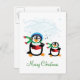 In the foreground our cute caroling penguins. In the background a Christmas carol mountain range. Caroling penguins were adapted from an original illustration by Brittany Anne Rankin.